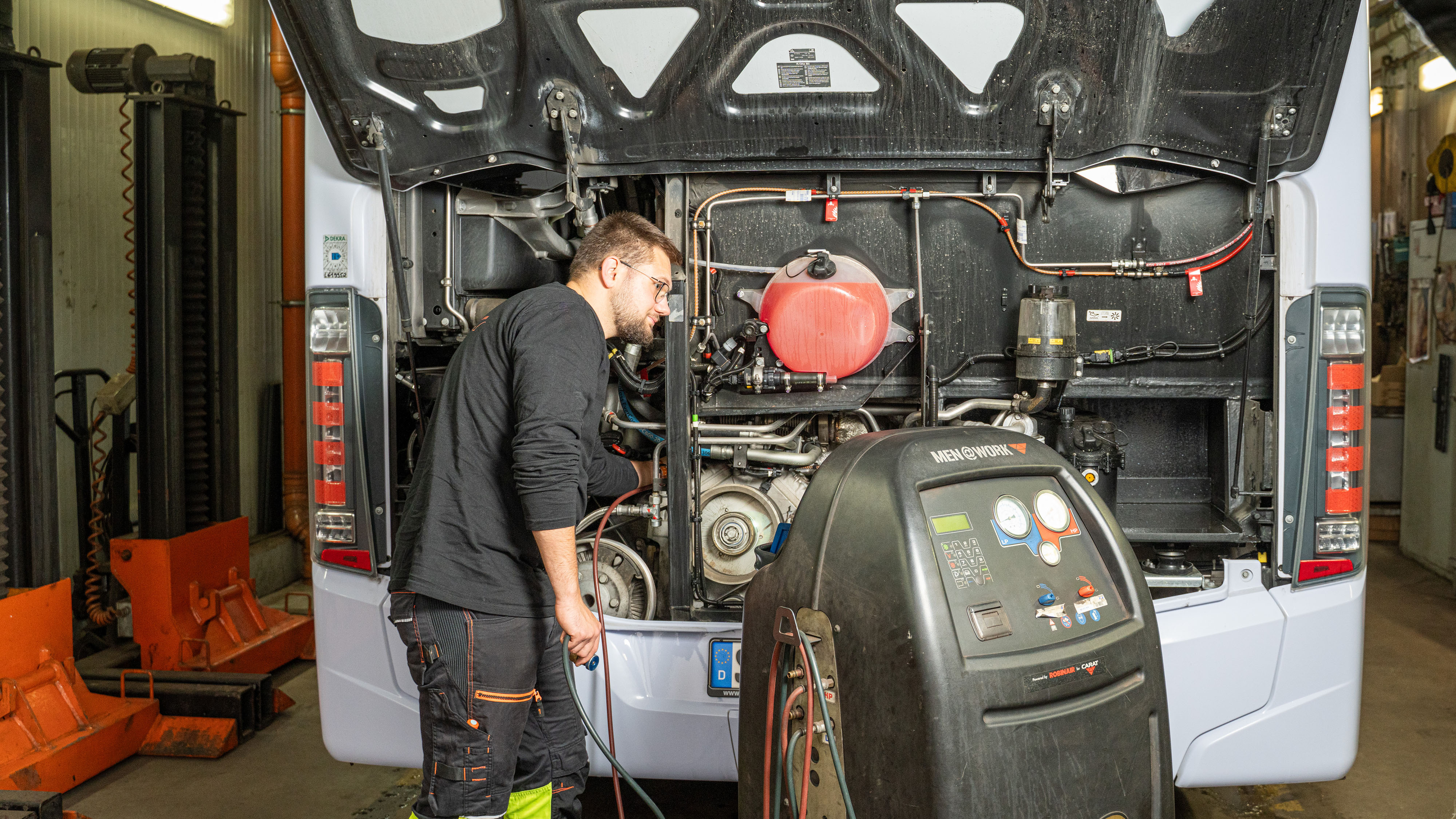 Von der Computer-Diagnose über komplexe Bordelektronik bis hin zu schwerer Mechanik und umfangreichen Karosseriearbeiten – wir werden damit fertig. Weil wir Tag und Nacht erreichbar sind, minimieren wir Ausfallzeiten bei unseren Kunden. Große Aufgaben erledigen wir schnell, kleine Pannen beseitigen wir sofort. Von kurzen Wegen profitieren auch die Fahrgäste: Jedes Fahrzeug ist zu jeder Zeit sicher. Hierfür sorgen besonders aufmerksame Fahrer und wöchentliche Checks, die weit über die gesetzlichen Anforderungen hinausgehen